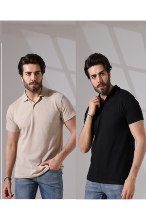 Bej-Siyah Slim Fitt 2Li Polo Yaka Tshirt