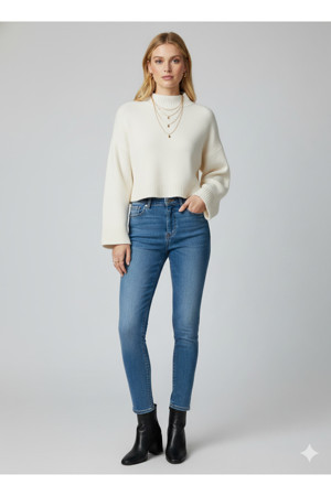 Bol Uzun Kollu Dik Bisiklet Yaka Crop Ekru Triko Kazak