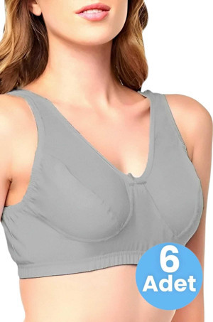 Kadın Pamuklu Penye Yarım Atlet Sütyen 6 Adet Gri 115