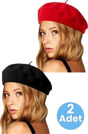 Kadın Fransız 2'Li Ressam Bere Kırmızı - Siyah
