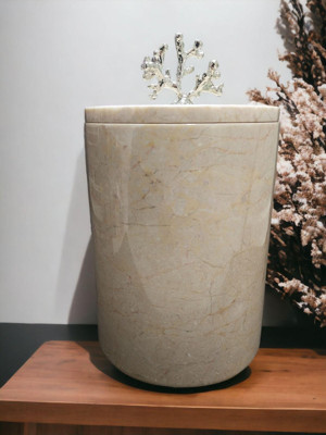 Urestone Mermer Pinterest Çöp Kovası-Mermer Kavanoz-Mermer Kapaklı Kutu-15X 20