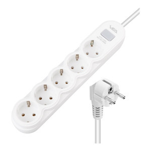 VA-21569 5'li Anahtarlı Akım Korumalı Priz Beyaz 1,5 m