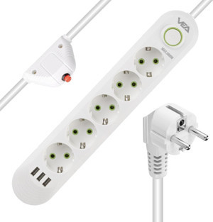 VA-21562 5'li 3xUSB'li 1.5 Metre Akım Korumalı Priz Beyaz