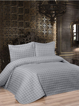 Roma Nakışlı Kapitone Çift Kişilik Yatak Örtüsü Seti 3 Parça Gri