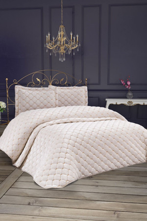 Roma Nakışlı Kapitone Çift Kişilik Yatak Örtüsü Seti 3 Parça Krem