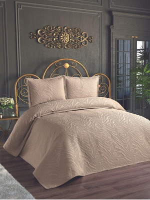 Venada Ultrasonik Kapitoneli Çift Kişilik Yatak Örtüsü Seti 3 Parça - Kahve