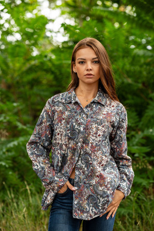 VerdeBlanco Dijital Çiçek Baskılı Uzun Kollu Relax Gömlek