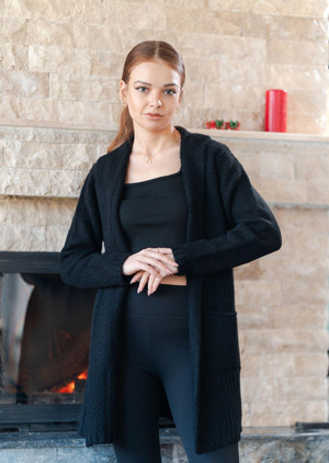VerdeBlanco Şal Yaka Püsküllü Uzun Örme Hırka Siyah