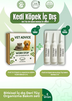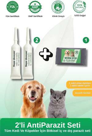 Kedi Köpek Iç Dış Tablet Damla Deri Tüy Bitkisel Parazit Bakım Seti