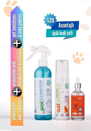 Avantajlı Üçlü Kedi Seti, Nemlendiricili, Tüy Bakımı, Koku Önleyici, Bağışıklık Destekleyici