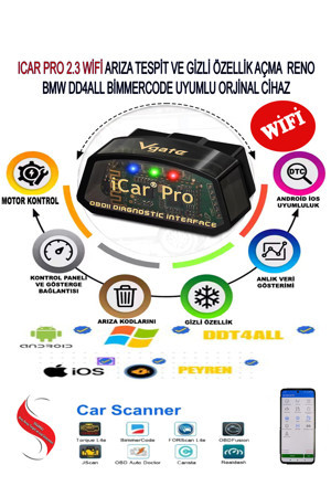 İcar Pro 2.3V Wifi Arıza Tespit Cihazı Dtcfix-Bimmercode-Forscan-Carista-Opl Monitor Uyumlu