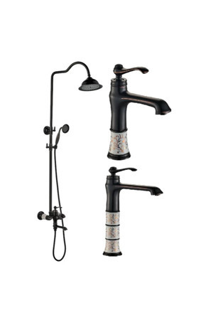 Porselen Desenli Kare Başlıklı Antik Lavabo + Eviye Mutfak + Duş Seti