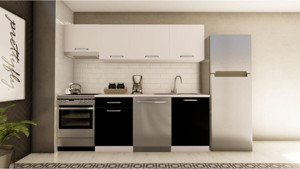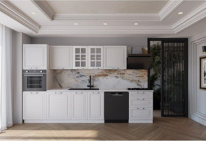 320 Cm Güler Hazır Mutfak Dolabı Parlak Hıgh-Gloss Kiler, Ankastre, Aspiratör- Camlı- Beyaz, Siyah