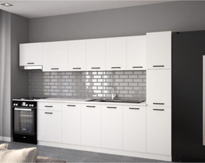 300 Cm Mdf Gövde Membran Kapak Üç Çekmeceli Leyla Hazır Mutfak - Beyaz (Tezgah Dahil)