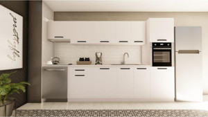 300 Cm Yasemin Hazır Mutfak Dolabı Aspiratör Ve Ankastre Kiler Modüllü Parlak Beyaz(Tezgah Dahil)