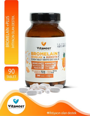 Bromelain Ananas 750Mg & Kuersetin 100Mg (Vitamin D3, B12) Plus 90 Tablet 1250 Mg
