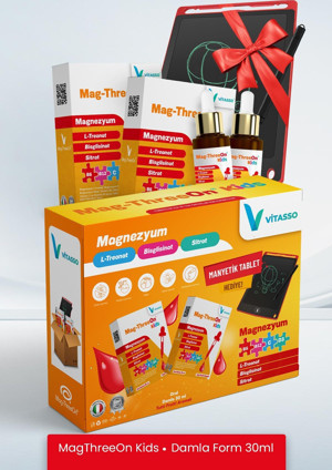 Çocuklar Için Magnezyum Magthreeon Kids Damla Ve Vitamin Hediye Manyetik Tablet Hediyeli 2'li Kofre Paket