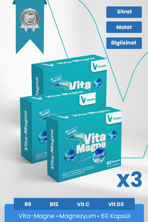 Vita-magne 60 Kapsül Magnezyum Malat- Sitrat & Bisglisinat Vitamin B6 B12 C D3 Gıda Takviyesi