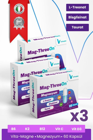 Magnezyum Magthreeon 60 Kapsül Magnezyum B6-B12-C-D3-K2 Vitamin Ve Mineral Gıda Takviyesi