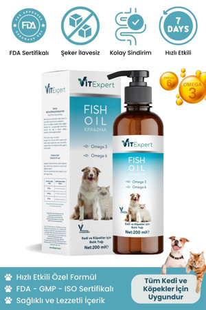 Kedi,Ve,Köpekler,Için,Premium,Fish,Oil,200,Ml,Omega,3,6,Içerikli,Bağışıklık,Destekleyici,Balık,Yağı