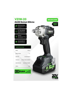 Voltz VZIW-20 Akülü Somun Sökme Kömürsüz 5Ah Çift Akü