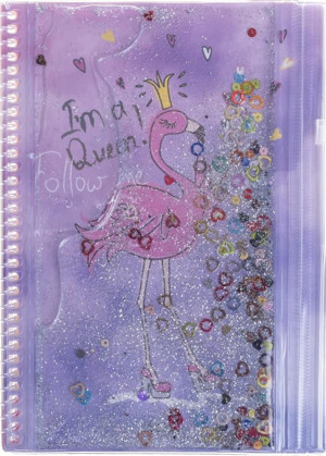 Kalemlikli Not Defteri 48 Sayfa Çizgili Simli ve Sulu Kapaklı Kalem Kutulu A5 Defter Flamingo Vk-0112-02