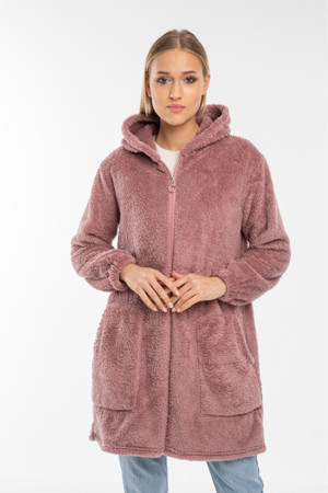 Kadın Gül Kurusu Uzun Fermuarlı Kapüşonlupolar Hırka