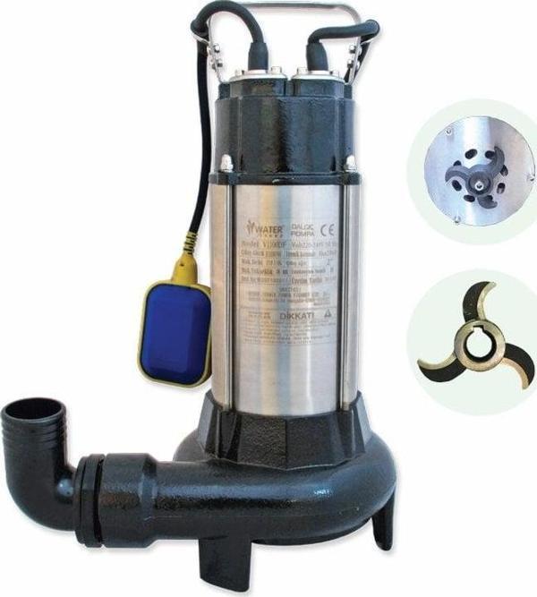 V1500F Kirli Su Aktarma, Vortex Fanlı Drenaj Dalgıç Pompa 24 mt. Yükseklik 20 m³/h