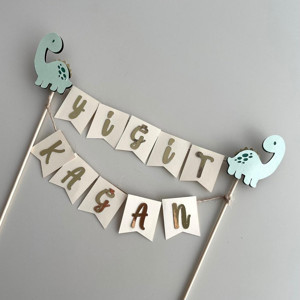 Kişiye Özel Dinazor Konsept 1 Yaş Doğum Günü Pasta Üstü Süsü