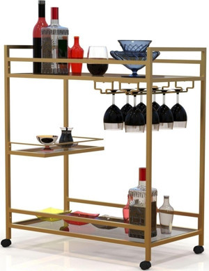 Lüks Servis Arabası & Bar & Dressuar ( Mat Gold - Şeffaf Cam)