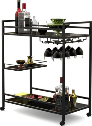 Servis Arabası & Bar & Dressuar ( Mat Siyah - Şeffaf Cam)