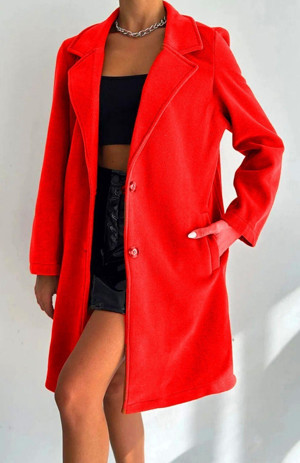 Kadın Kırmızı Astarsız Polar kaşe Kaban