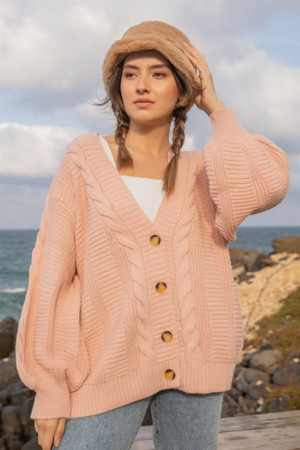 Kadın Düğmeli Saç Örgü Triko Hırka