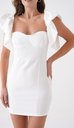 Kadın Atlas Kumaş Kol Detaylı Göğüs Dolgulu Sırt Dekolteli Beyaz Elbise 163