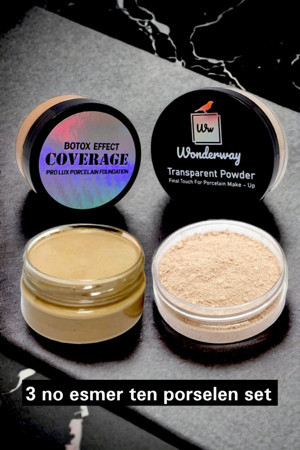 Yoğun Kapatıcı Porselen Fondöten & Transparan Pudra Set No:3 Esmer Ten Sünger Ve Göz Kalemi Esmer Ten