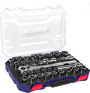 Workpro WP200555 1/4'’ 1/2’’ 38 Parça Cr-V Lokma ve Topaç Cırcır Araç Tamir Seti