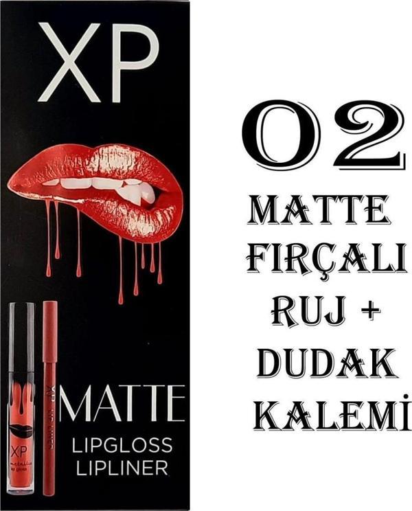 Matte Lip Gloss 02 Fırçalı Mat Ruj + Dudak Kalemi