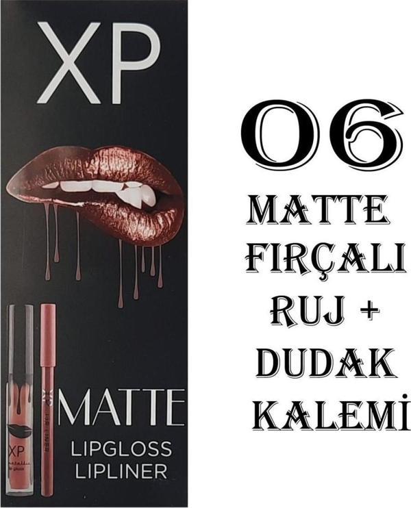 Matte Lip Gloss 06 Fırçalı Mat Ruj + Dudak Kalemi