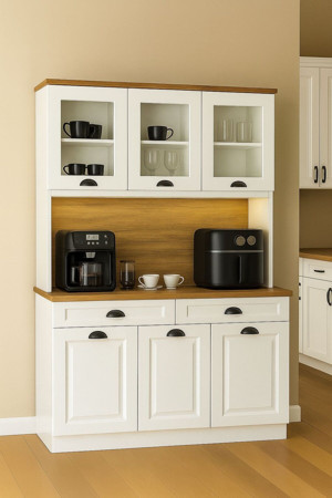Led Işıklı Beyaz Mutfak & Kahve Köşesi Dolabı – 140X210 Cm Çok Amaçlı Dolap Kiler Ardiye
