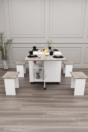 Katlanabilir Yemek Masası 4 Tabureli Yemek Masası