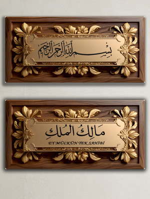 Yalova Shop Besmele Ve Malik-ül Mülk İkisi Bir Arada Harika MDF Tablo 2 li Set Kapı Üstleri İçin İdeal