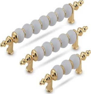 Polimer Boncuk Yakut Ayak Renkli Boncuk Dolap Çekmece Kulpları (128 Mm ) Altın- Beyaz - 2 Adet