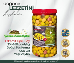 Taş Kırma Yeşil Zeytin – Edremit Tipi L Boy – 1 Kg (231–260 adet/kg)