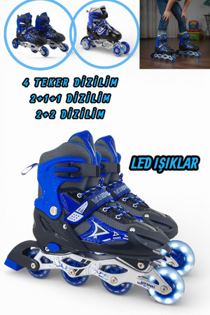 Silikon Tekerli Paten Ayarlanabilir 2+1+1, 2+2 Ve Tek Sıra Paten Işıklı Çocuk Pateni 3 İn 1