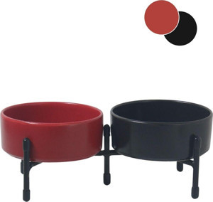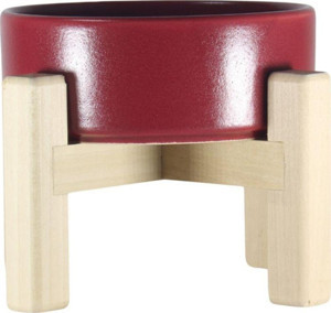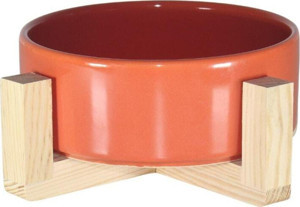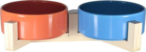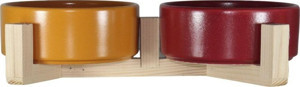 Seramik mama su kabı evcil hayvanlar için çift taraflı kullanılabilen ahşap ayağı ile beraber.