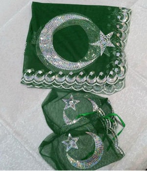 Sermet Süs Dünyası Yeşil Damat Sağdıç Kına Omuz Örtüsü Şalı Eldivenli Pullu Ayyıldız Motifli .Kare Ölçülerde