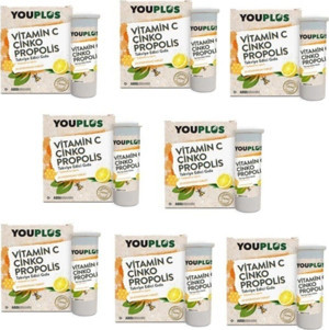 Youplus Vitamin C Çinko Propolis 20 Efervesan Tablet Limon Aromalı 20 Adet X8