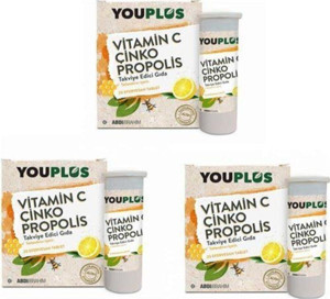 Youplus Vitamin C, Çinko, Propolis Efervesan Tablet Takviye Edici Gıda 3Lü Paket