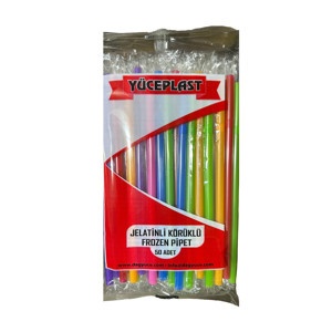 Körüklü Karışık Renkli Jelatinli Pipet - 22 Cm. - 50 Adetlik Paket