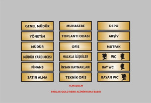 Muhasebe Müdür Finans Depo Ofis Kapı Isimlikleri 18'Li Aliminyum Parlak Gold Metal Levha 26Cmx7Cm